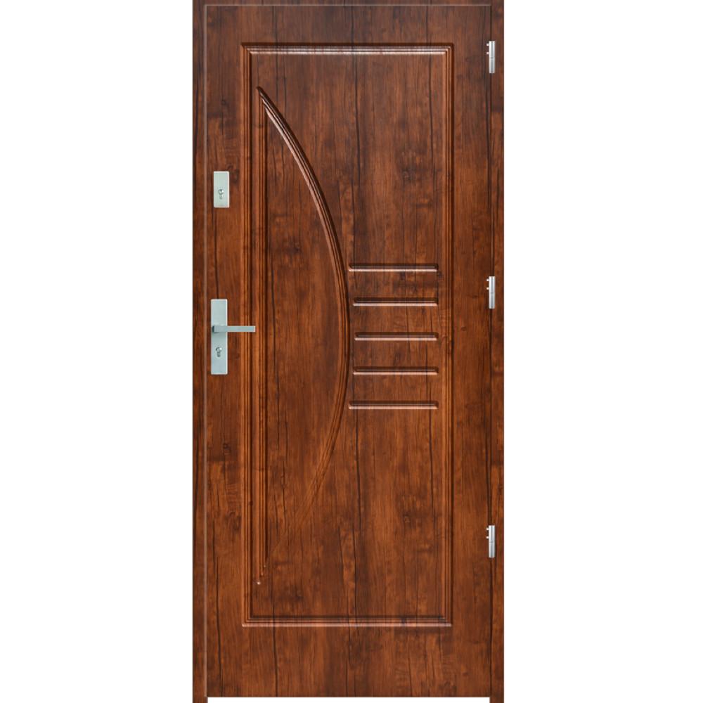 Skrzydło drzwiowe wykonane z klejonego wzdłuż i w poprzek drewna sosnowego. Jego wypełnienie stanowi płyta wiórowa pełna i styropian twardy. Takie wykonanie zwiększa wytrzymałość konstrukcji.