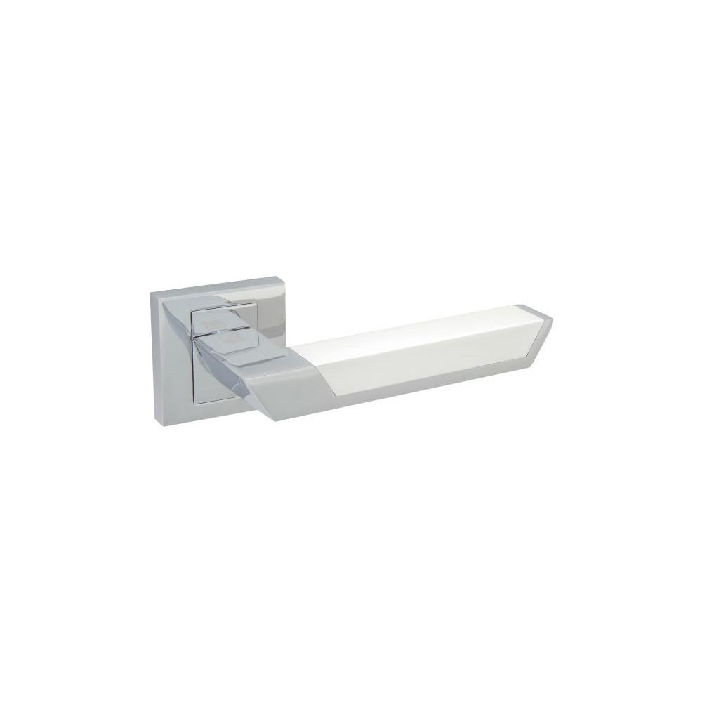 Klamka wysokiej jakości o ciekawym wzornictwie w kolorze białym połączonym z chromem ,bardzo wytrzymała powłoka. Często wybierana do drzwi nowoczesnych jak i tradycyjnych.
